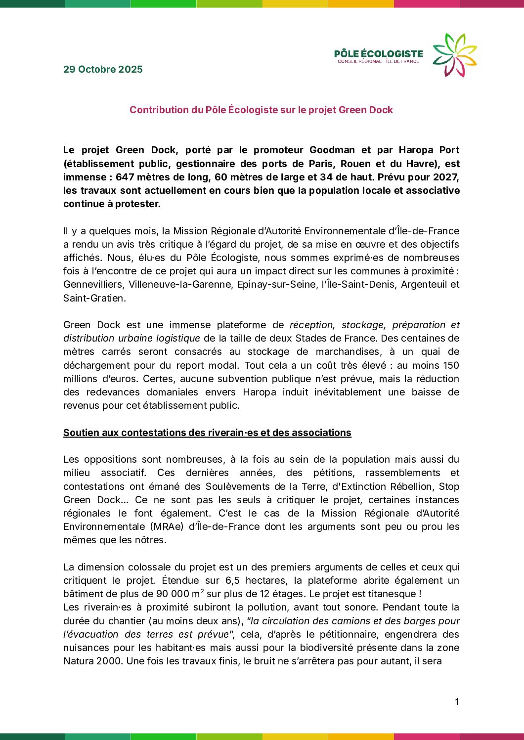 Il y a quelques mois, la Mission Régionale d’Autorité Environnementale d’Île-de-France a rendu un avis très critique à l’égard du projet, de sa mise en œuvre et des objectifs affichés. Nous, élu·es du Pôle Écologiste, nous sommes exprimé·es de nombreuses fois à l’encontre de ce projet qui aura un impact direct sur les communes à proximité : Gennevilliers, Villeneuve-la-Garenne, Epinay-sur-Seine, l’Île-Saint-Denis, Argenteuil et Saint-Gratien.